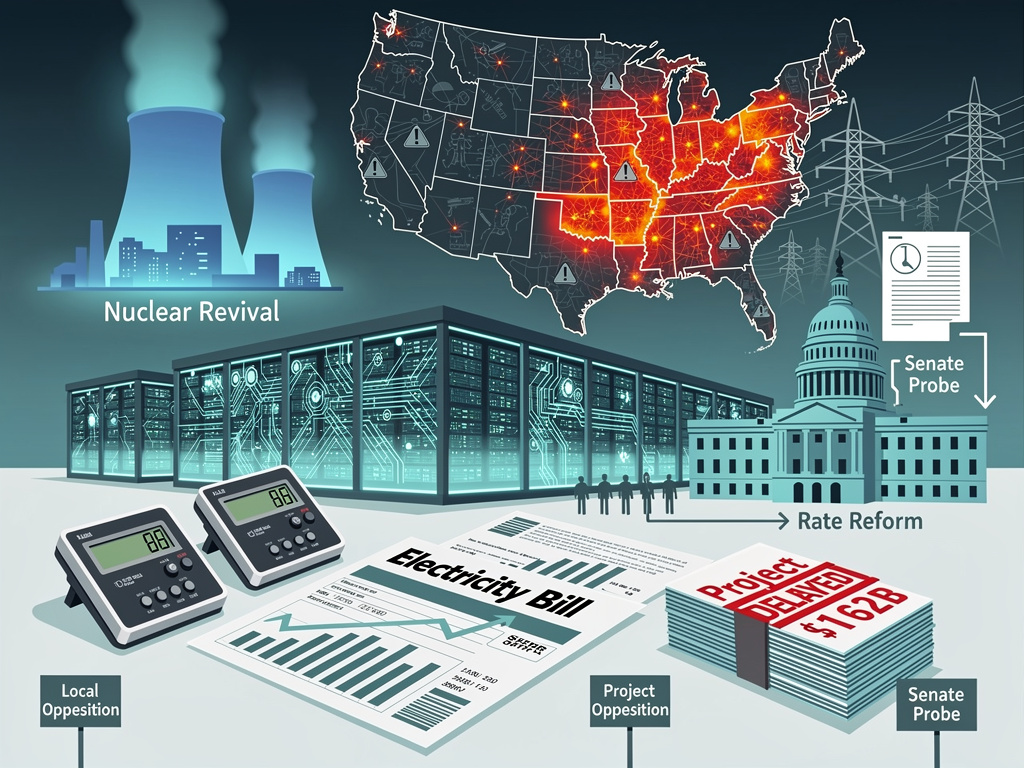 Hampden Township blocked office-park data centers; Lackawanna County saw plans scrapped; Hazel Township rejected a 1,280-acre campus. Similar rebuffs hit Arizona (Amazon’s Tucson project), Indiana (Google’s last-minute pullout) and beyond, delaying grid upgrades essential for AI scale.
