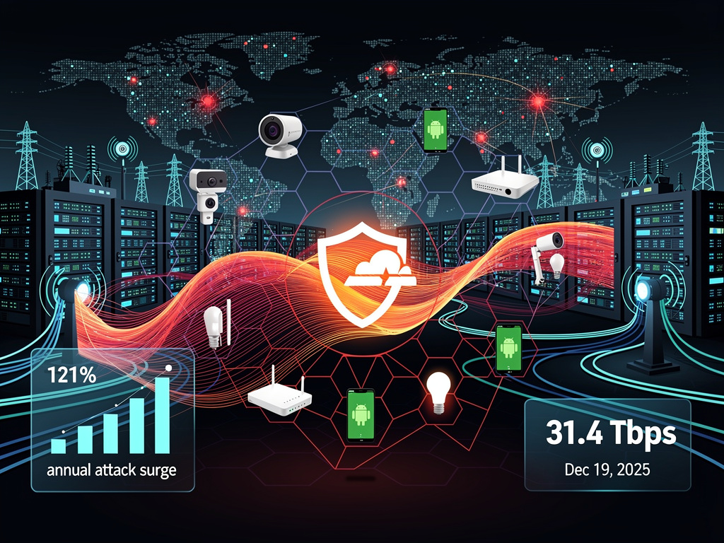 Cloudflare Inc. revealed it thwarted the most massive distributed denial-of-service attack ever publicly documented, a 31.4 terabits-per-second barrage unleashed by the Aisuru/Kimwolf botnet on December 19, 2025. Dubbed “The Night Before Christmas” for its timing, the assault combined hyper-volumetric HTTP floods exceeding 200 million requests per second with Layer 4 attacks peaking at 31.4 Tbps, overwhelming targets in telecommunications and information technology services. “The campaign targeted Cloudflare customers as well as Cloudflare’s dashboard and infrastructure with hyper-volumetric HTTP DDoS attacks exceeding rates of 200 million requests per second (rps) alongside Layer 4 DDoS attacks peaking at 31.4 Terabits per second, making it the largest attack ever disclosed publicly,” Cloudflare stated in its 2025 Q4 DDoS Threat Report.