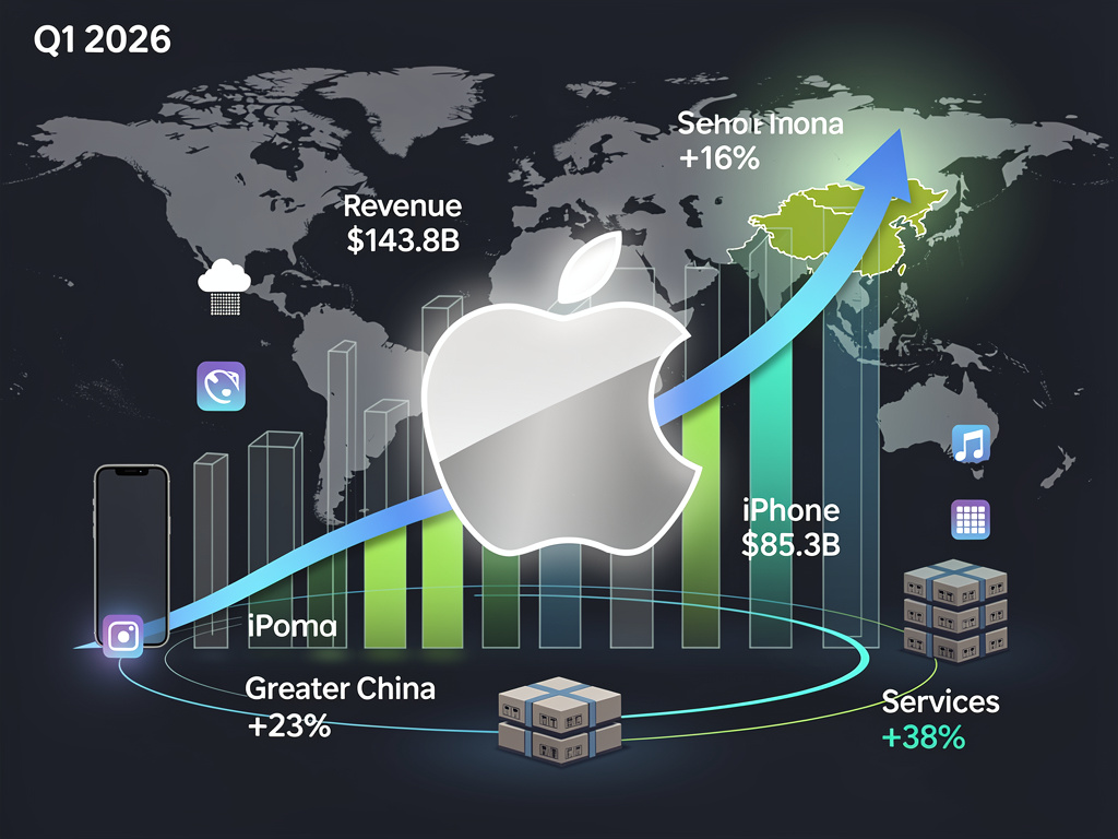 Apple Inc. delivered a fiscal first-quarter performance that shattered expectations, propelled by explosive demand for its latest iPhone models. Revenue climbed 16% year-over-year to $143.8 billion, topping LSEG consensus estimates of $138.48 billion, while net income reached $42.1 billion, or $2.84 per diluted share, surpassing forecasts of $2.67. The results, announced after markets closed on January 29, 2026, marked all-time records for total revenue, earnings per share, iPhone sales, and services, as detailed in Apple’s official release (Apple Newsroom).