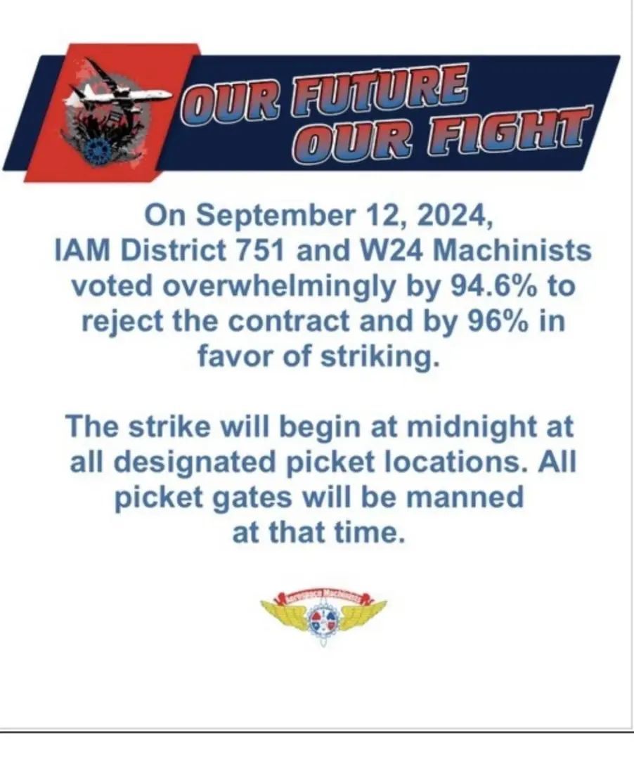 Late Thursday night, as the clock struck midnight, thousands of Boeing employees walked off the job, marking the beginning of a strike that is expected to have far-reaching consequences for both the aerospace giant and the global aviation industry. Members of the International Association of Machinists and Aerospace Workers (IAM) rejected a contract proposal that, while promising a 25% wage hike over the next four years, failed to meet their demands for better pay, job security, and improved working conditions.