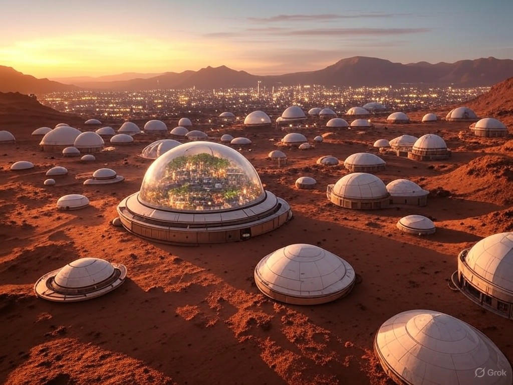 These domes, potentially spanning hundreds of meters, would connect via sealed tunnels to ensure mobility during Mars’ months-long dust storms. Power would come from vast solar arrays, adapted to Mars’ weaker sunlight, supplemented by compact nuclear reactors. Water extraction from subsurface ice, especially in regions like Arcadia Planitia, would sustain life, while subterranean habitats, inspired by Musk’s Boring Company technology, offer additional radiation shielding, as reported by The New York Times.