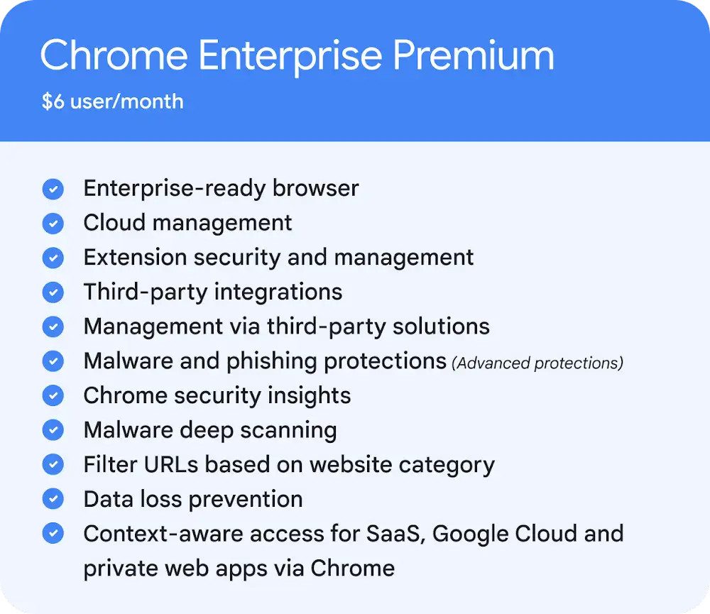 Chrome is the most popular web browser on the market, dwarfing its closest rivals. As such, Chrome is a top target for bad actors looking for exploits. Google is now offering an Enterprise Premium version for $6 a month, bringing a number of security features and improvements.