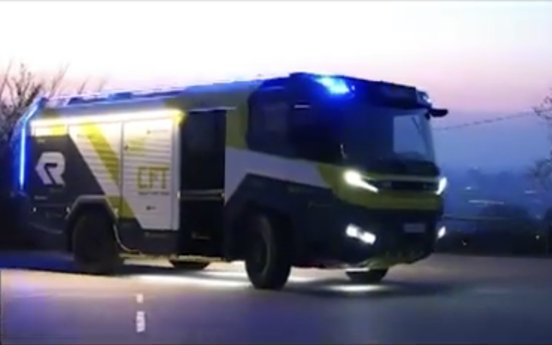 The fire engine will have two batteries, providing 100 kilowatt hours, which should power operations for two hours. An onboard diesel generator can be used to operate beyond the batteries’ limits.
