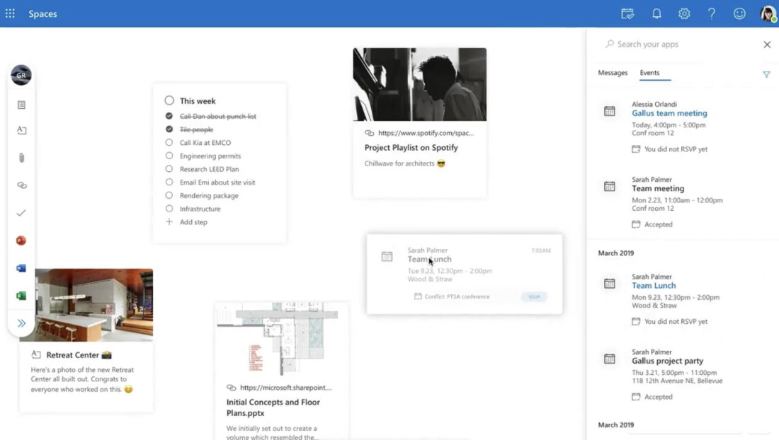 “Spaces pulls together your documents, emails, and events using the search terms you provide here. In upcoming releases, we’ll be using AI to assist in discovering and grouping work items into Spaces.”